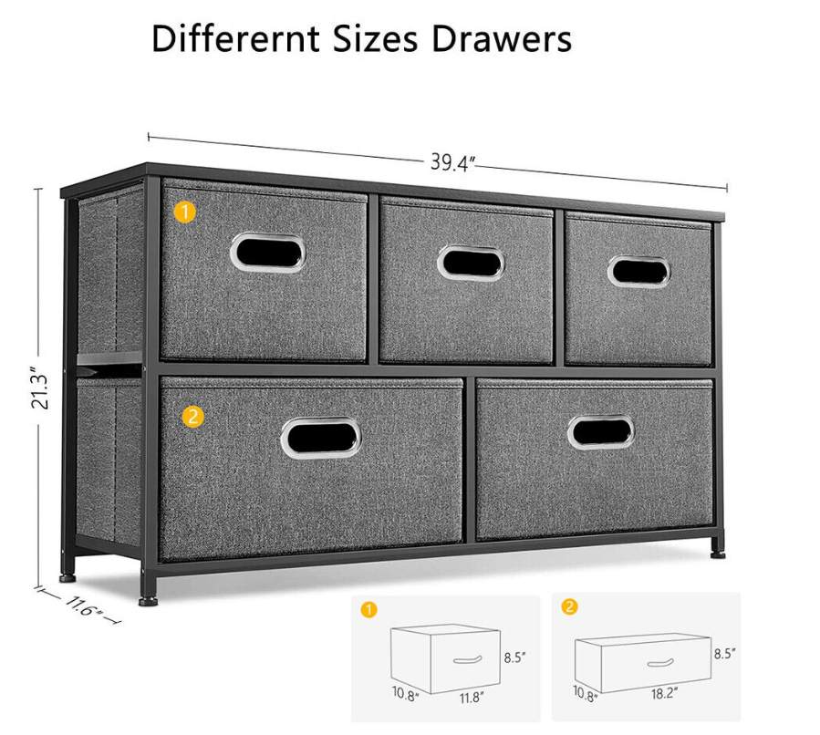 - Made of high-grade fabric, this 5-drawer storage organizer cabinet is very durable and good looking;