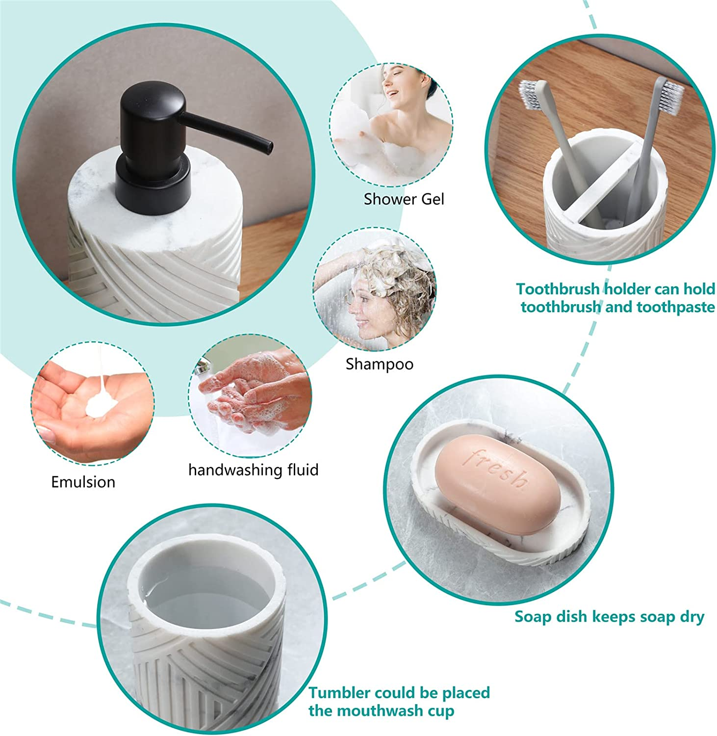 Bathroom Accessories Set 4 Pcs Marble Look Resin Vanity Counter Countertop Acces