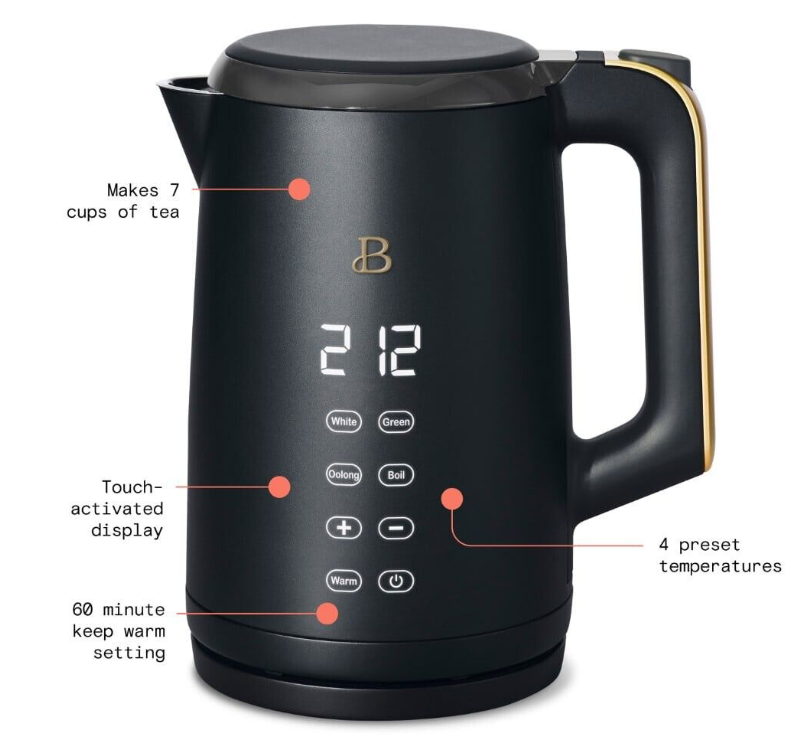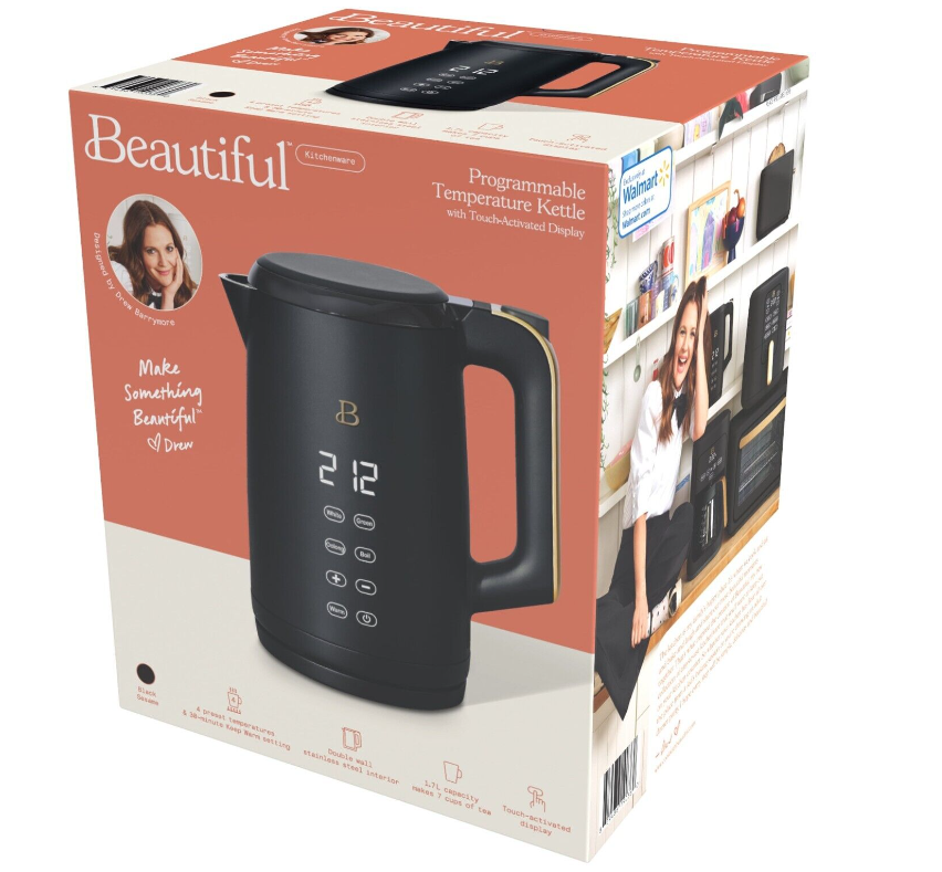 Beautiful 1.7 Liter One-Touch Electric Kettle, Black Sesame by Drew Barrymore
