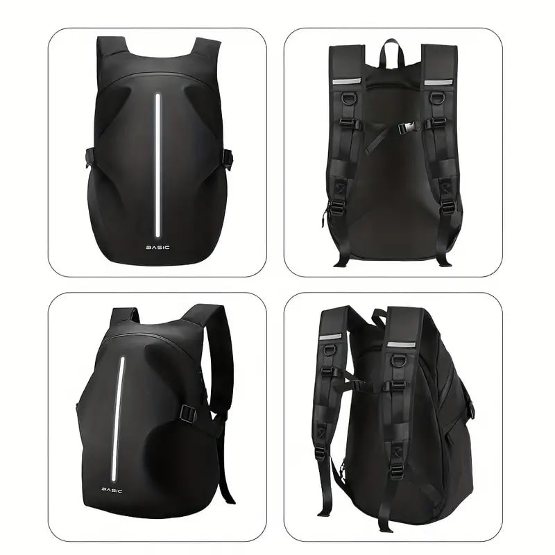 Black Motorcycle Riding Backpack Waterproof Helmet Storage Travel Backpack Reflective Safety Shoulder Bag Large Capacity For Men
