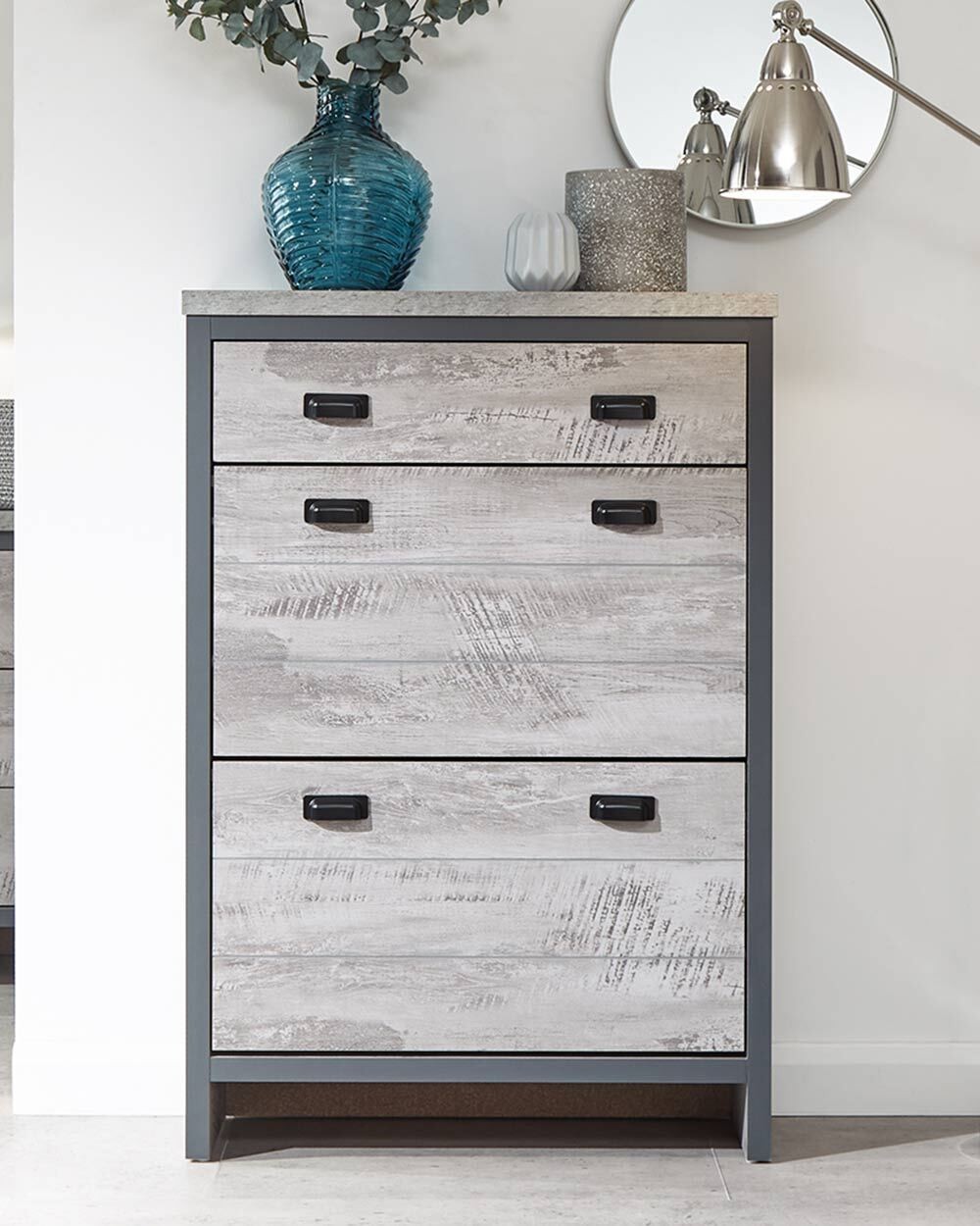 Boston 2 Tier 1 Drawer Shoe Cabinet Grey Slim Shoe Storage Hallway Porch