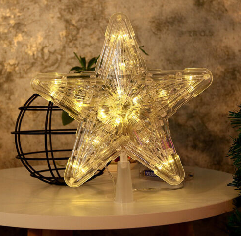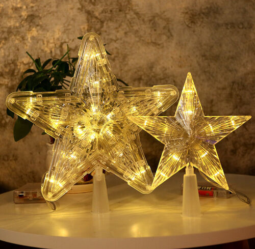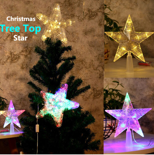 Christmas Tree Topper Lighted LED Star Xmas Light Up Lamp Decor Glitter Gift