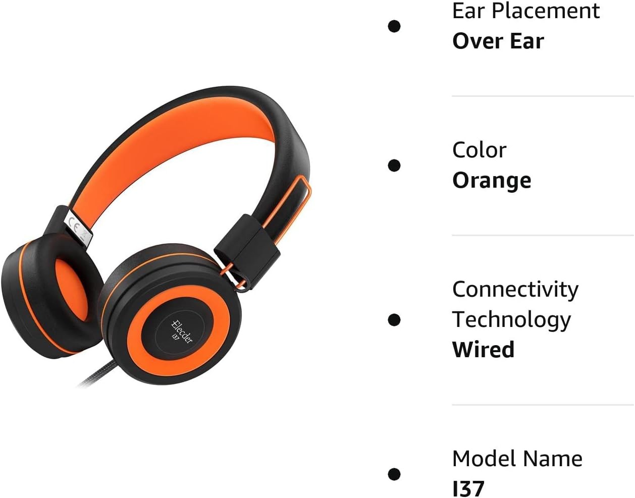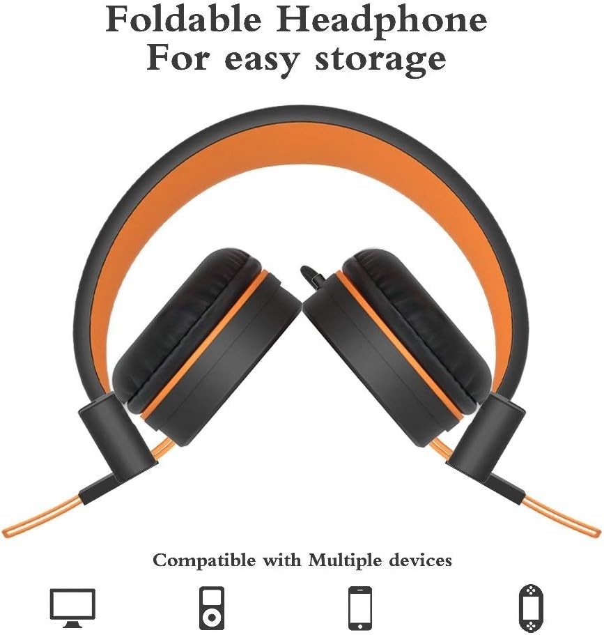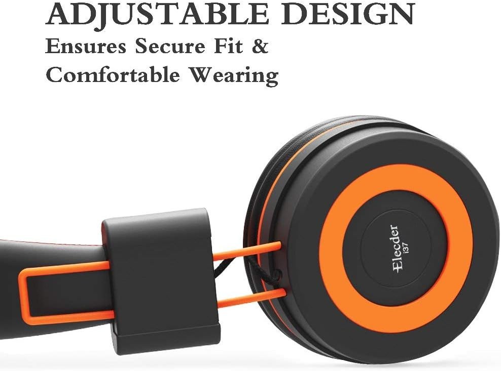 ELECDER i37 Kids Headphones Children Girls Boys Teens Foldable Adjustable On Ear Headphones 3.5mm Jack Compatible Cellphones Computer MP3/4 Kindle School Tablet Orange/Black
