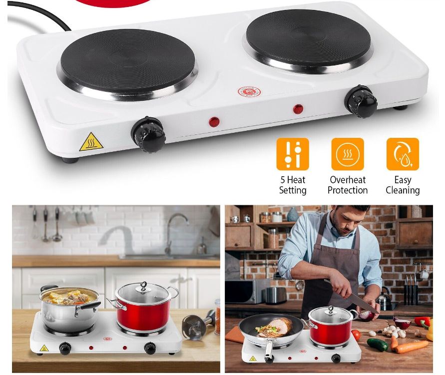 Overview:Is your cooking space compromised? Our Portable Double Hot Plate can save your space and give you mighty 2000W capacity to ensure maximum heat for quick heating with 5 temperature gears. Compact size allows it to be used in dorms, offices, or even carry for travel. Perfect for boiling water, reheating sauces, making soups to meet your daily needs!