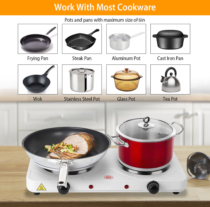 Features:- Heat Quickly & Evenly:Equipped with double 6in burning plates and powered by 2000W of powerful power,it heats up quickly and cooks food evenly without any hot or cold spots.