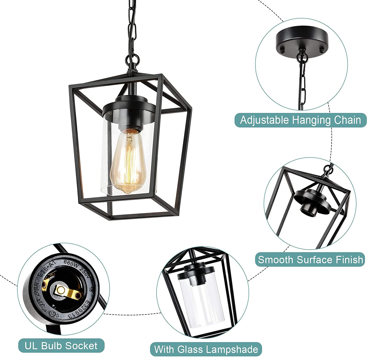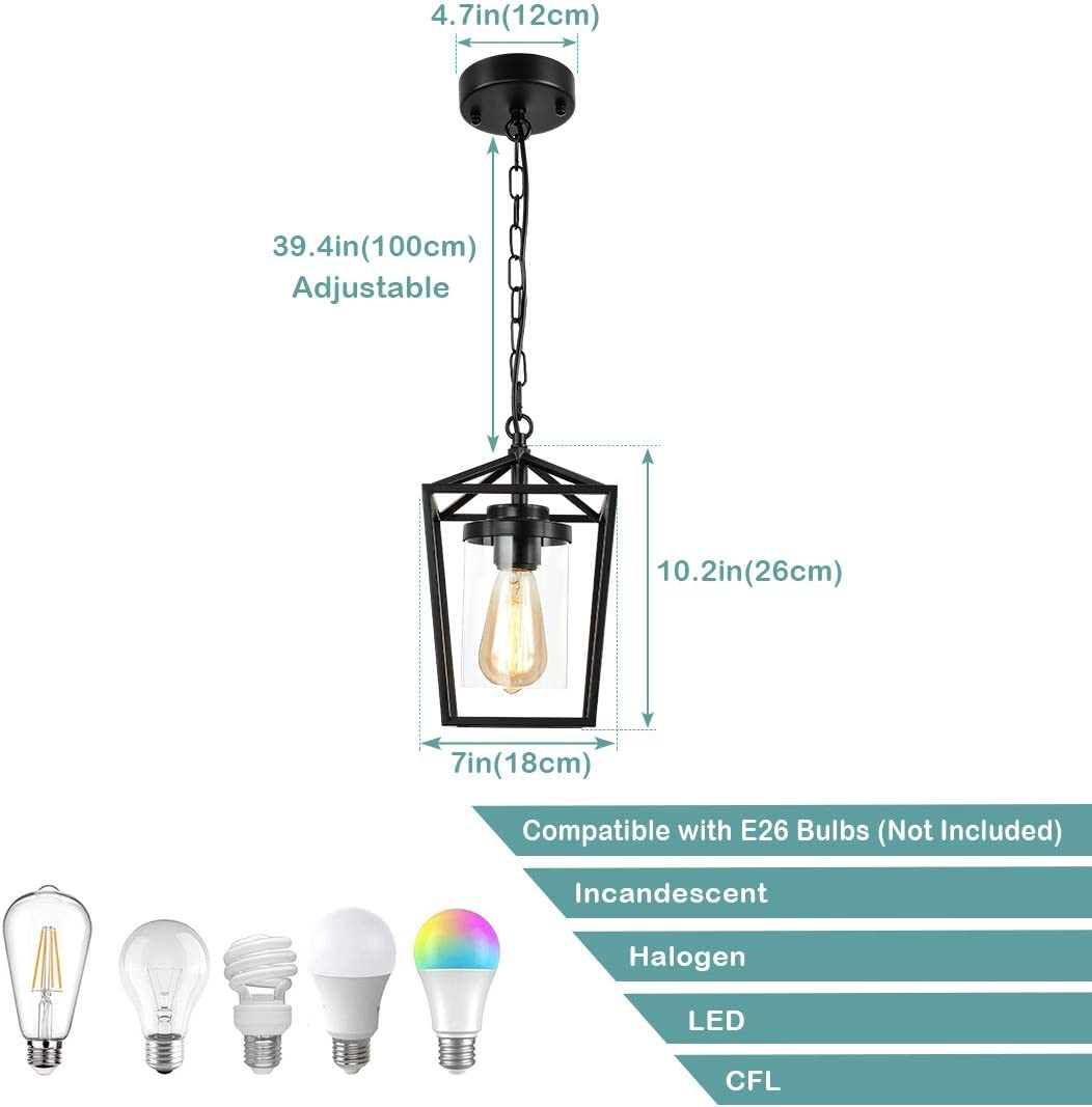 Farmhouse Pendant Lights Kitchen Island, Indoor Outdoor Hanging Chandelier, Blac