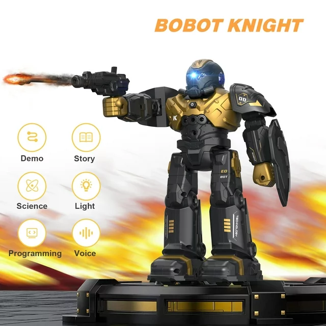 1. ?【Febfoxs Upgraded Toy Robot】Unisex Upgraded robot is made of high-quality matte metal, It has cool features include magic sound effects, simulated machine guns and shield, all of which make it interesting and attractive, suitable for toy robot model lovers of all ages.
