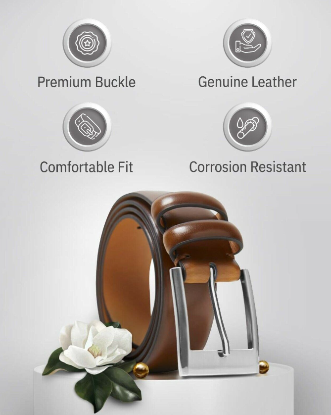 • This belt is made out of Genuine Leather that is extremely soft and durable. Its smooth texture for a neat and stylish belt, perfect to use for events and your daily outings.