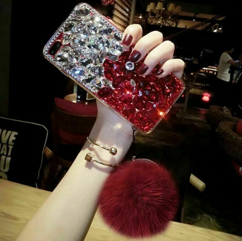 Glitter Bling Diamond Case & Plush Ball For iPhone 12 14 Pro Max 13 11 XS XR 7 8