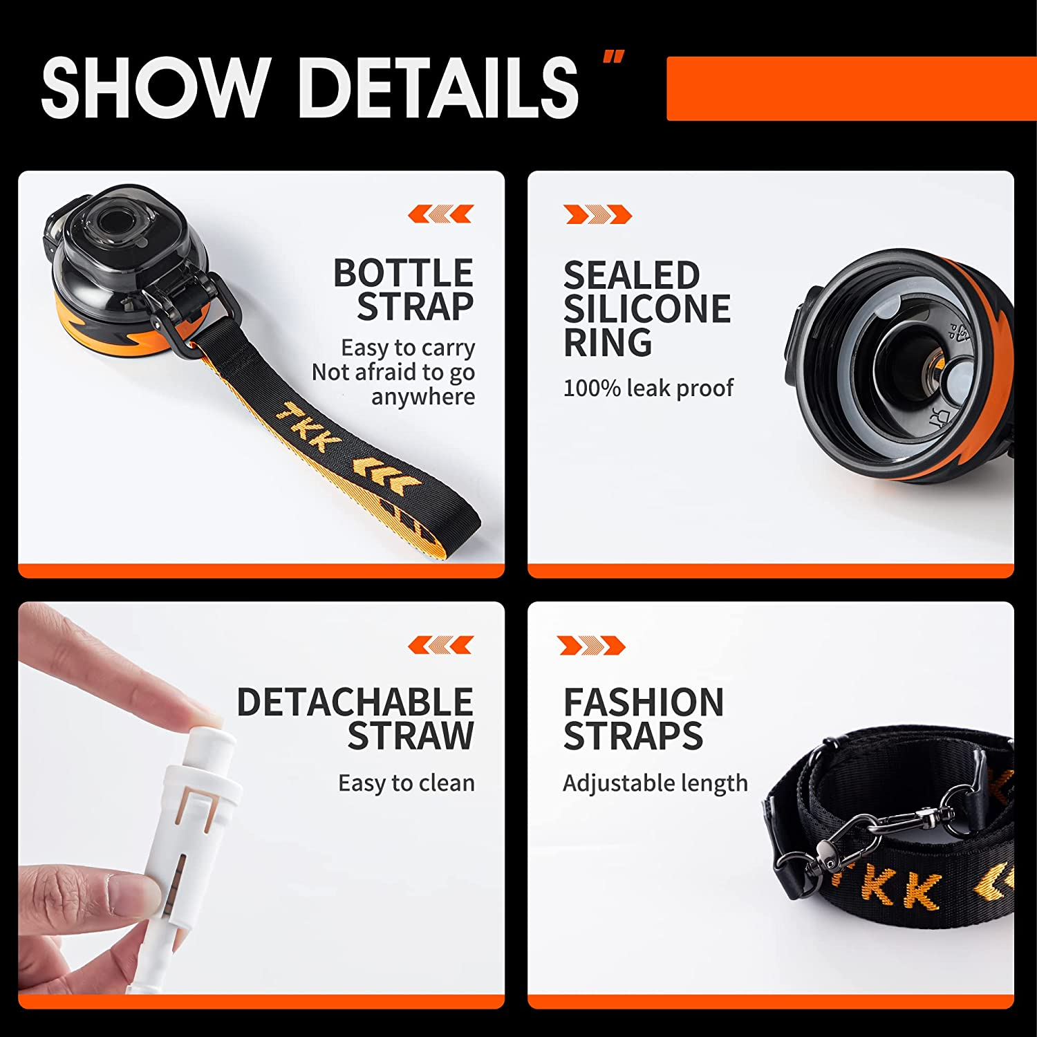 64 OZ Insulated Water Bottle with Straw, Stainless Steel Half Gallon Large Water