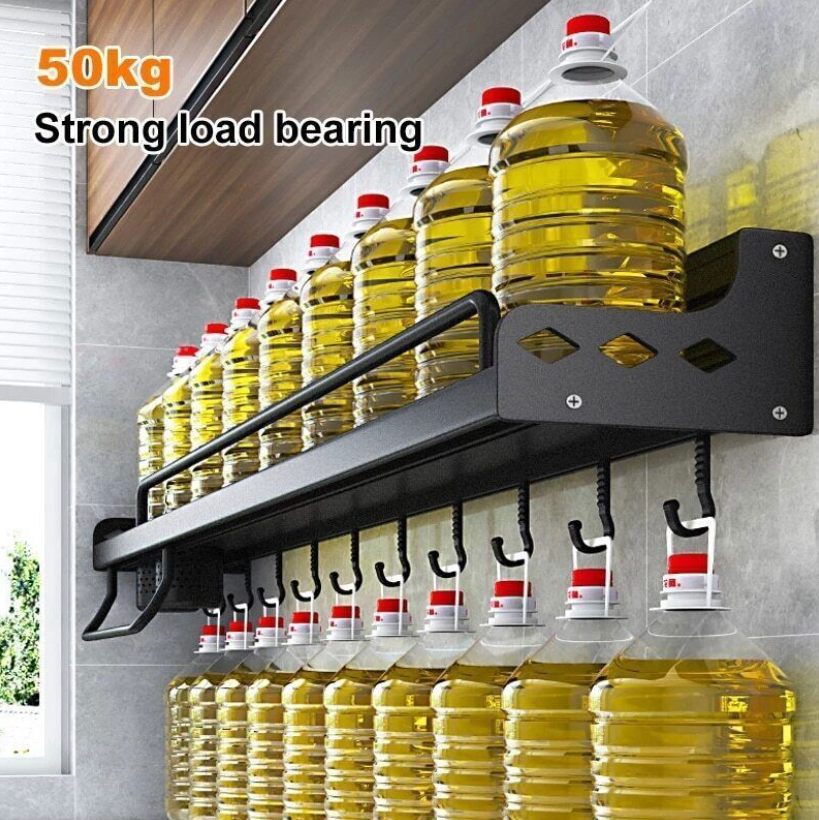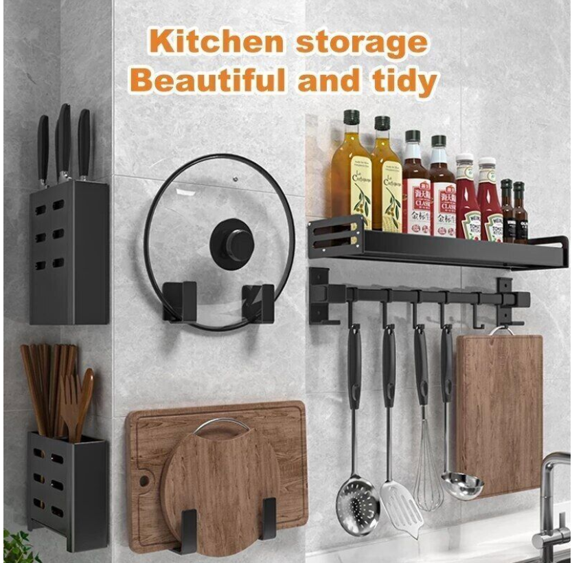 Kitchen Shelf Wall-mounted Spice Storage Racks Punch-free Kitchen Knife Holder Wall Season Bottle Chopstick Tube Shelf Organizer