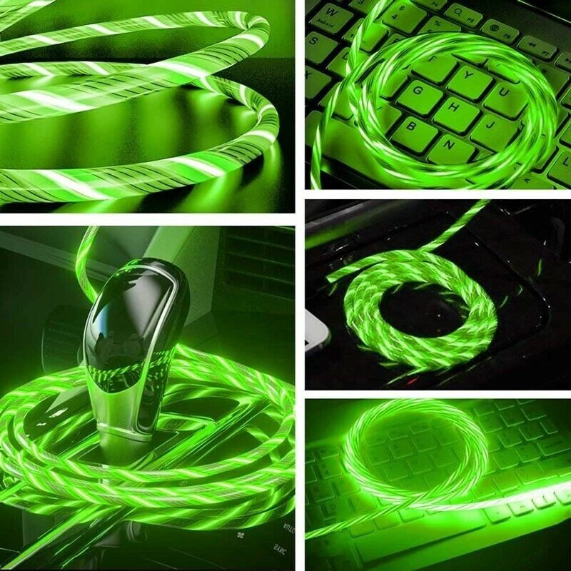 LED Light Up Charging Charger Cable USB Data Cord iPhone Android Type C Phone
