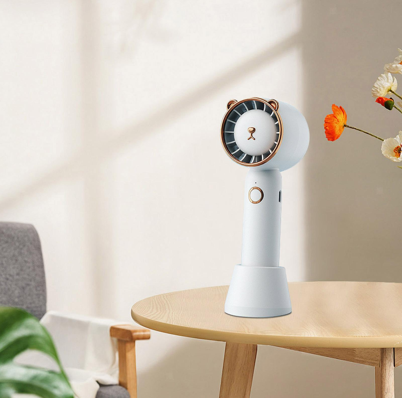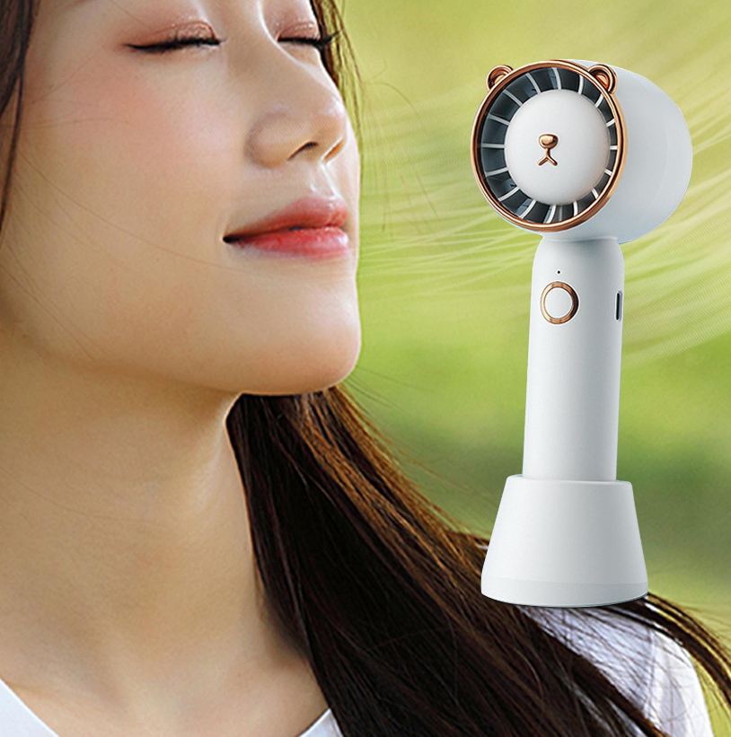 【With Base】Not only as a portable handheld fan to carry around but also as a desk fan.