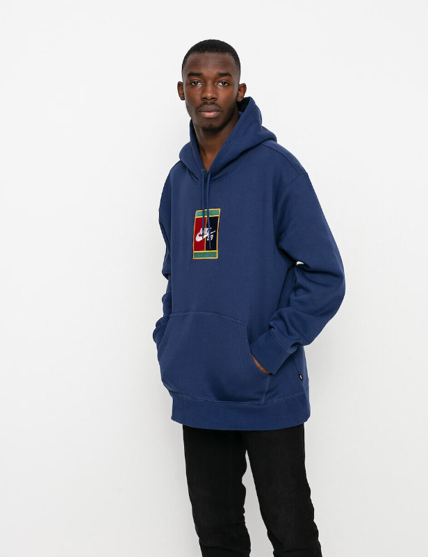 Layer up in the Nike SB Hoodie. This cozy fleece pullover superimposes the Nike SB logo over the colorful Nike Court logo for a skate spin on a heritage design.