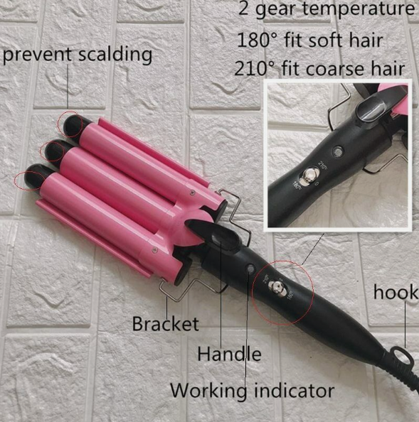 A beauty household tool with convenient holder and 3 curler perm rolls, which can make hair with gorgeous waves simply, perfect to help you effectively shave a quick curled hair styling.