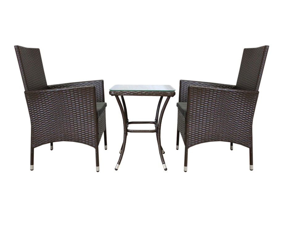 Designed for maximum style and comfort, this exquisite bistro set has 5cm thick cushions, seats 2 people and is sure to be the perfect centrepiece for any garden tea party. Transform your garden into a private paradise and be the envy of all your friends with this premium seating set. The easy-to-assemble flat-pack furniture enables you to relax outside with a drink in little to no time.