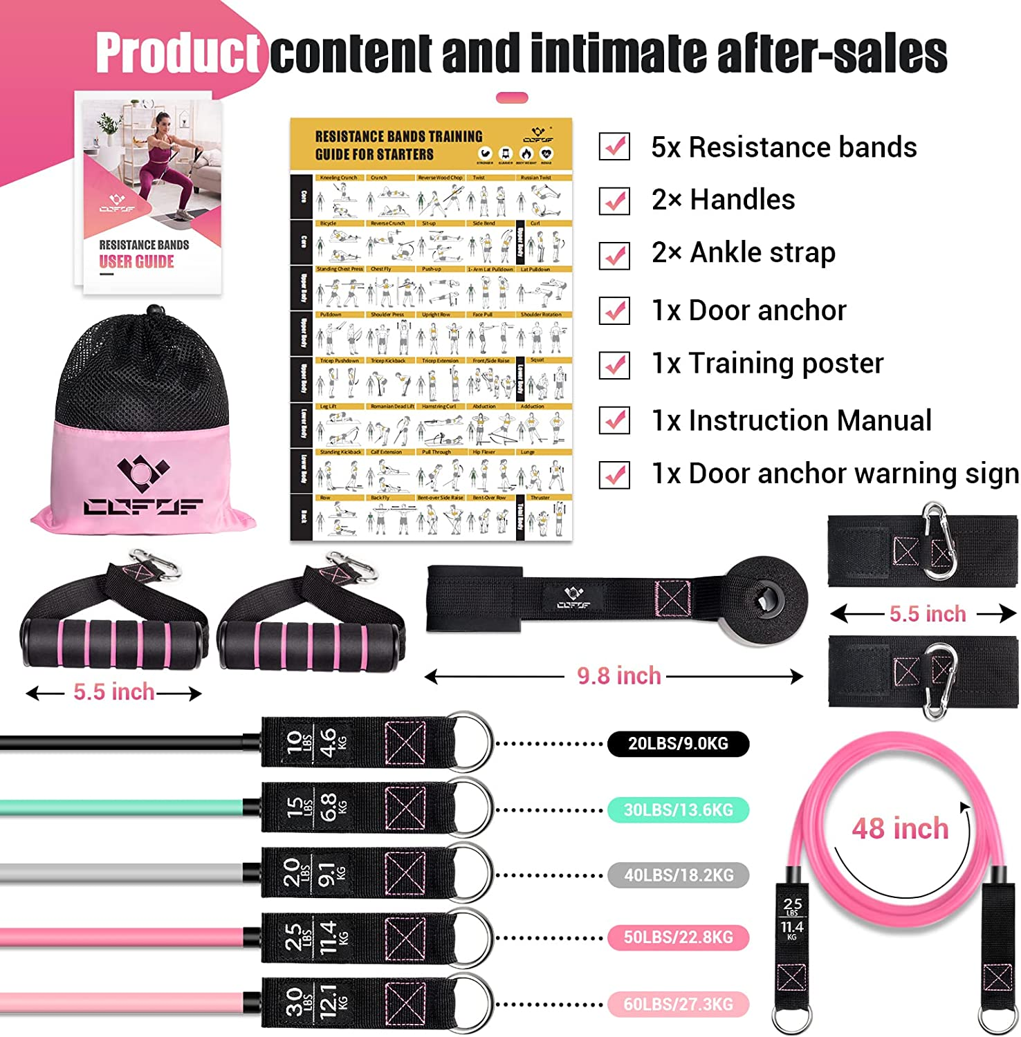 Resistance Bands with Handles for Women, 5 Level Exercise Bands Workout Bands fo