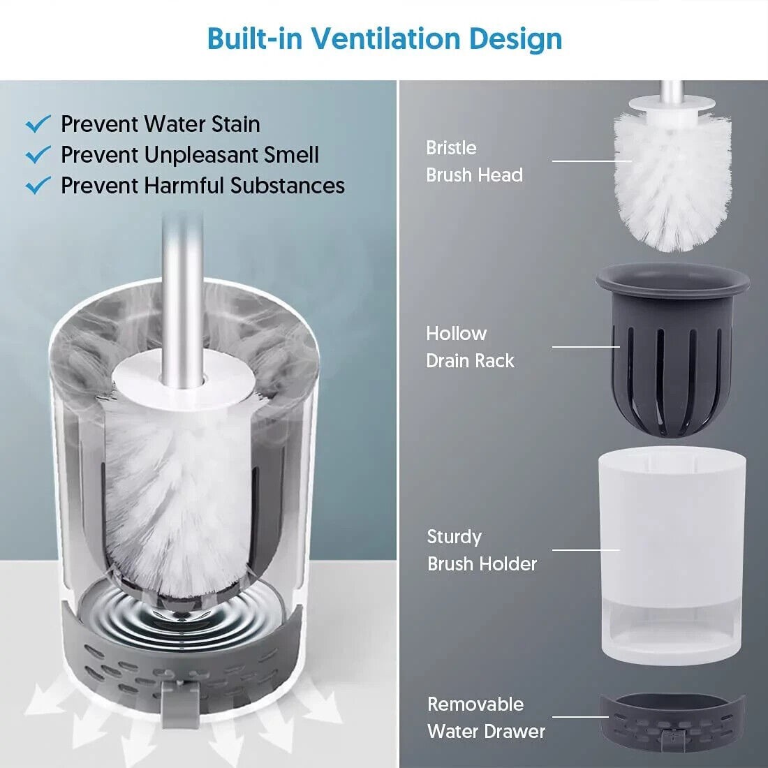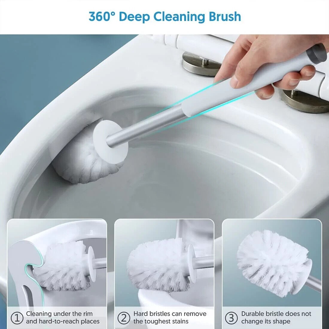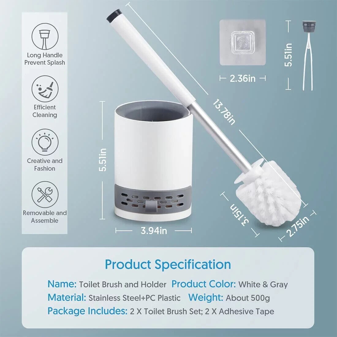 Toilet Brush and Holder Caddy Plunger Set 2 Pack-Hard Bristles Toilet Bowl Brush