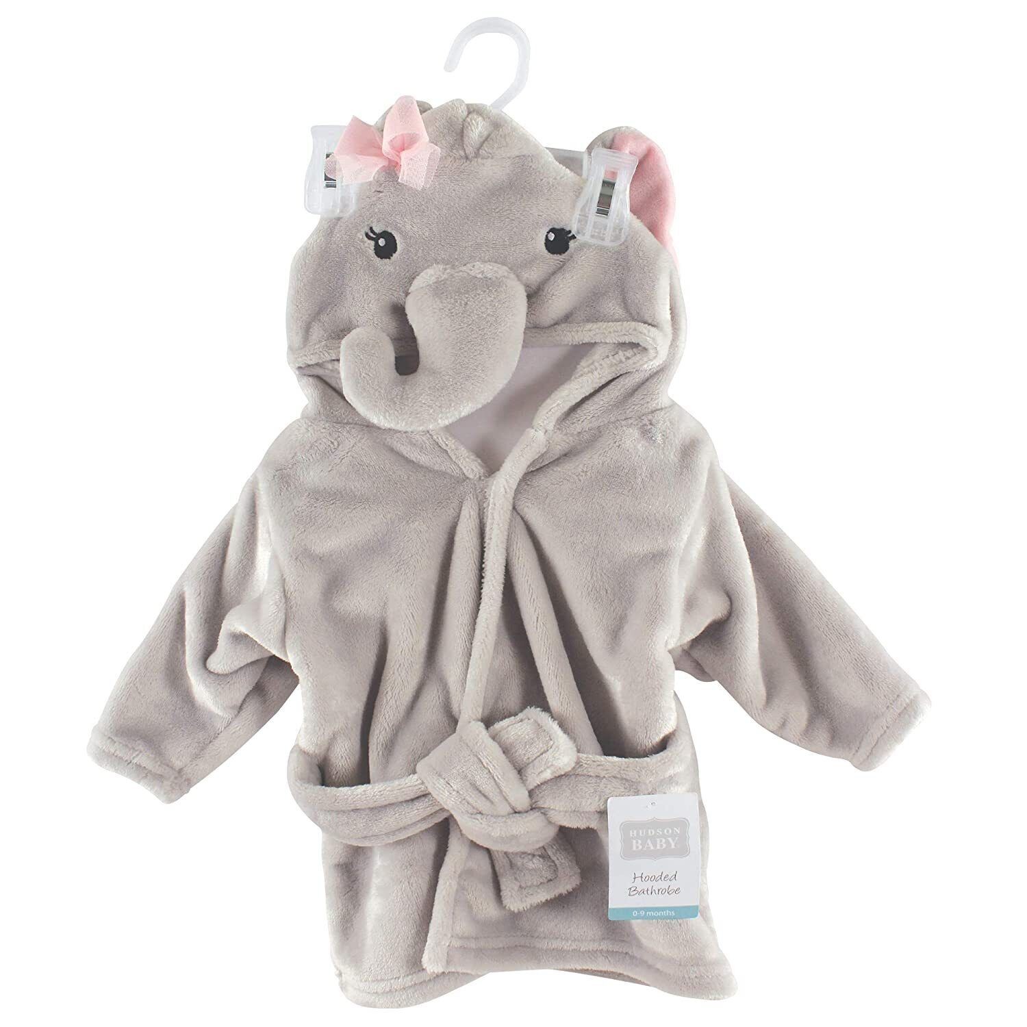 Unisex Baby Plush Animal Face Bathrobe, Pretty Elephant, 0-9 Months