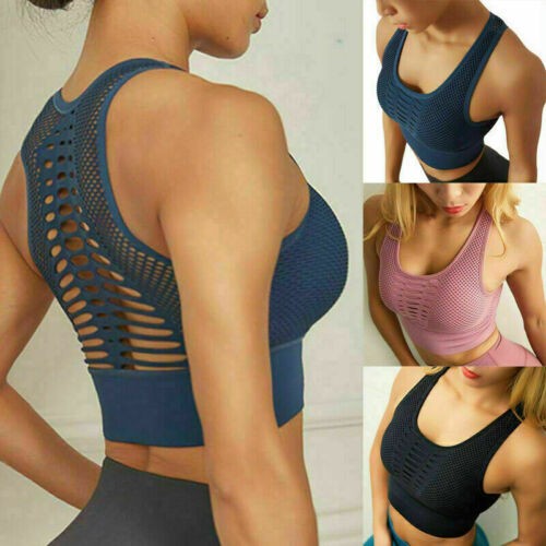 Women's Yoga Padded Sports Bra Backless Workout Seamless Racerback Gym Crop Tops